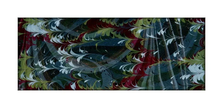 As an artist living on the northern coast of California, I specialize in the Turkish form of marbling called Ebru. This centuries-old art form involves floating paint on thickened water, making patterns and designs using special tools, and then placing paper, fabric, wood, or other materials on top of the water where the image is immediately and permanently transferred. In addition to having my work featured in art and lifestyle magazines, juried shows, and galleries, my marbled pieces have been used in bookbinding, in mixed media, as fashion accessories (purses, scarves), as home décor, and more.